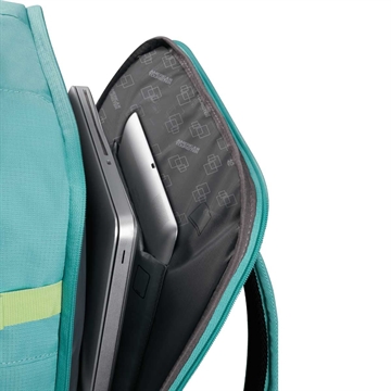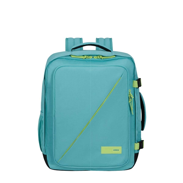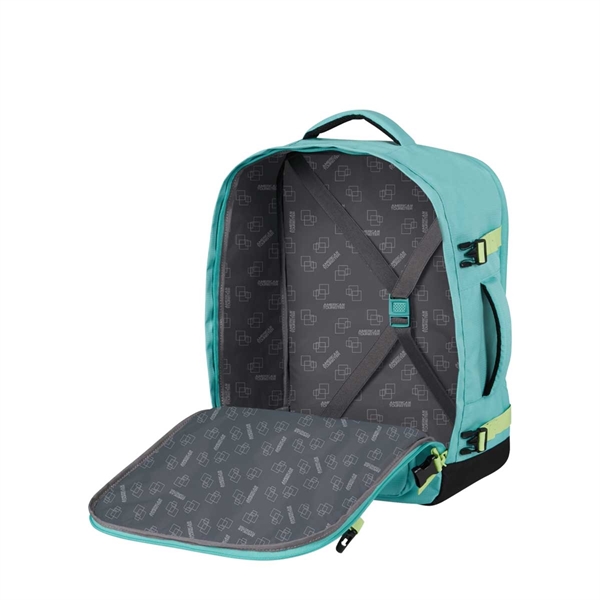 149175 American Tourister Take2Cabin, rygsæk til kabinen. Rygsækken har mål så den kan ligge under sædet i de store fly. Rygsækken har elastikkryds til fastholdelse af tøj i det store rum, Den har en stor polstret lynlåslomme på forsiden med orginiser og plads til en 15,6" PC