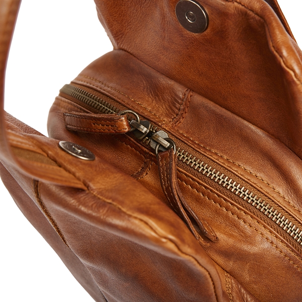 Pia Ries Combirygsæk i Cognacfarvet Vasked Læder